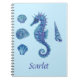 Cuaderno de caballitos de mar azules y casetas de mar personalizables