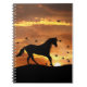 Caballos y pájaros al atardecer, esto hace un gran cuaderno o diario. Una forma bonito de seguir la pista del trabajo escolar o de sus pensamientos.