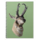 Cuaderno de tiro en la cabeza de antílope berrendo macho. Los cuernos negros únicos del antílope son muy diferentes de las astas de un ciervo o alce. Una diferencia es que los antílopes no mudan ni vuelven a crecer sus cuernos como los ciervos y alces.