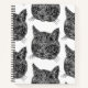 Cabeza ornamental en blanco y negro de un gato, inspirada en un animal de la vida real y dibujada originalmente con lápiz sobre papel.