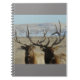 Cuaderno de cabezas de alce toro. Los alces toro mudan y vuelven a crecer sus cuernos cada año, es una cantidad asombrosa de crecimiento considerando que lo hacen en unos cinco meses. Las colinas del río en el fondo hacen una fotografía atractiva de estos dos jóvenes toros.