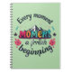 Captura tus pensamientos, sueños y objetivos con este cuaderno de diseño con la cita edificante: "Cada momento es un nuevo comienzo". Este cuaderno sirve como recordatorio de que cada nuevo momento trae infinitas posibilidades. Un gran regalo para escritores, estudiantes o cualquier persona que busque inspiración en su vida diaria.