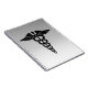 Insignia médica o símbolo del Caduceo, varita mágica del dios griego Hermes (Mercurio), dios del comercio, la elocuencia, la invención, los viajes y el robo, y también fue un símbolo de heraldos y comercio, no de medicina. Aun así, este símbolo ha sido adoptado por muchos en el campo de la medicina. Una barra corta entrelazada por dos serpientes y coronada por un par de alas
