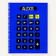 Calculadora azul con nombre y teclado. El nombre de la pantalla de la calculadora se puede cambiar o eliminar.