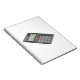 Calculadora de oficina gris con panel solar sobre fondo blanco