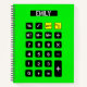 Calculadora de color verde neón con nombre y teclado. El nombre de la pantalla de la calculadora se puede cambiar o eliminar.