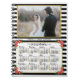 Celebra el 2023 con este cuaderno de calendario de collage de fotos a rayas con clase. En el interior, estos cuadernos tienen papel rayado para todas tus notas y listas. Con la adición de la hermosa portada del calendario anual, podrás ver todo el año de un vistazo, además de disfrutar de tu foto favorita de familia o boda. El diseño incluye un fondo a rayas en blanco y negro con adornos florales en rosa, rojo y amarillo. Hay corazones junto a los nombres de los meses en letra cursiva y un borde delgado de color dorado. Con fechas fáciles de leer en negro y dorado en negrita, este hermoso calendario tiene espacio para tu texto personalizado y fotografía horizontal. Conquista el nuevo año con este cuaderno de calendario moderno y lindo.