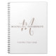 Este diseño de cuaderno destaca un gran monograma elegante en caligrafía, combinado con letras mayúsculas limpias para el nombre. El texto minimalista en el centro inferior añade un toque sutil, creando un aspecto moderno, profesional y sofisticado.