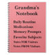 Bloc de notas de Demencia - Cambiar CUALQUIER (o TODO) del texto en la portada de este cuaderno, Cambiar el nombre de la abuela - Utilícelo para mantener un registro para el paciente de las actividades y rutinas diarias, tener una sección para los registros de medicamentos o recordatorios si fuera necesario. - Úsalo para ayudar cuando los visitantes vengan - de lo que le gusta hablar (o de lo que debe mantenerse alejado porque causa angustia), los visitantes pueden dejar una nota sobre lo que hablaron u otra información - Puedes cambiar cualquiera de estos temas. - - - Sacar cualquier cosa que no sea apropiada (y simplemente levantar el orden para los otros temas) o simplemente dejar en blanco/borrar cualquier línea.
