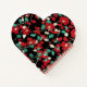 Gráficos digitales de Bulgan Lumini ©. Patrón floral de estilo japonés. Camelias florecientes en rojo, verde y blanco sobre fondo negro.