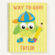 Un búho verde fresco, sobre un fondo rayado amarillo, en la parte superior de este cuaderno se muestra "Way to Go" escrito en letras Naranjas. El nombre de su hijo está escrito al final de su diseño. ¡Compra el tuyo hoy! Obras de arte de búho creadas por: Diseño de Prettygrafik (https://www.etsy.com/shop/Prettygrafikdesign) Material gráfico de rayas: AMBilustraciones http://www.etsy.com/shop/AMBillustrations/