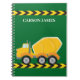 Cuaderno genial de camión mezclador de cemento concreto personalizado para un niño que ama los vehículos de construcción amarillos en negro y amarillo sobre fondo azul. Regalo divertido para la escuela primaria para un niño que ama los coches y camiones. Personaliza con el nombre de tu hijo.