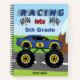 Agrega un toque especial al día de tu estudiante de primaria con este adorable cuaderno personalizado de camión monstruo de carreras de regreso a clases. El cuaderno dice Corriendo hacia y tiene espacio para que agregues el nivel de grado de tu hijo y el año escolar. También hay un camión monstruo azul y banderas de carrera. ¡Hace un regalo personalizado de regreso a clases genial para un niño o niña que ama los carros!