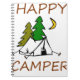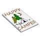 Diseño divertido del campista contento con una tienda en el aire libre.