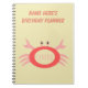 Este impresionante planificador de cumpleaños personalizable presenta un contorno de cangrejo rojo con piernas y garras rosas. El cangrejo tiene grandes ojos negros en los tallos. También hay un texto rosado que dice Cáncer dentro del contorno del cangrejo. Este diseño es ideal para personas con cumpleaños entre el 21 de junio y el 22 de julio.