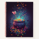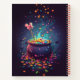 Los caramelos de fruta descienden de un caldero negro. Un mango de cuchara con un arco rosado sale del azúcar de la cubierta. Es un regalo divertido de Halloween para cualquier amante de los dulces.