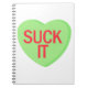 Un corazón de caramelo verde que dice: "SUCK IT".