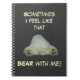 Cuaderno de encargo que ofrece el oso polar que duerme en una foto divertida de la actitud y texto "que siento a veces como ese oso conmigo!" Usted puede cambiar el texto, la imagen y el fondo. Para personalizar este cuaderno apenas haga clic en el "personalizar él" y entonces suprima o cambie el texto, cambie o añada su propia imagen y/o cambie el color de fondo. Usted puede también cambiar la fuente y su tamaño.