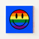 Esta colorida obra de arte muestra una cara de carita de caricatura arcoiris.
