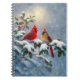 Un par de cardenales rojos norteños se posan en una rama sagrada cubierta de bayas rojas y nieve.