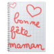 Carnet à offrir pour la fête des mères , Bonne fête maman est écrit en français et en rouge sur une feuille d'écolier