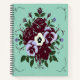 EN : An elegant notebook featuring a bouquet of burgundy roses and lilac pansies on a soothing seafoam green background. This spiral notebook is available with a hardcover for maximum durability or a softcover for a lightweight feel. Perfect for your daily notes or personal journaling.