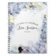 Personalice la elegante carta de color de agua Blue Hydrangea Flowers al cuaderno de novias para que los huéspedes en su ducha de novia, despedida de soltera o boda escriban un mensaje sincero a los recién casados para crear un recuerdo o recuerdo duradero. Personalizar con el nombre de la novia y la fecha del evento. Este elegante cuaderno de espiral de flores personalizado presenta una fotografía floral de color agua digital pintada de pétalos de flores de hidrato azul claro con un fondo blanco.