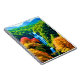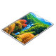 Una serena cascada china rodeada de coloridos árboles y montañas en medio de una hermosa naturaleza.