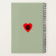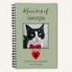 Looking for a great way to remember your cat? This cat memorial journal will help with your journey. The design features a sage green background for a photo of your beloved kitty. Below the photo you can add the dates. There is a pawprint inside a red heart followed by the words, "You left forever pawprints on my heart!" Above the photo the words, "Memories of" are in a lovely script with the name of your cat right below. You can select many different styles of paper for inside your journal. On the back, the sage green is continued along with a heart with a black pawprint inside of it. Copyright Peaches the Tuxedo Cat