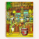 Journal in a tropical-themed illustration depicting cats in a tiki bar. Dressed in vibrant Hawaiian shirts, one cat plays a ukulele and stands near a red drum, while others enjoy cocktails. The bar features bamboo decor, tiki masks, and palm fronds, for a festive, island atmosphere.