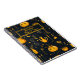 Un Cauldron con temática de bruja y un cuaderno de pociones. El diseño presenta pociones y calderos en naranja sobre un fondo negro con un cuadro de texto negro y bordes naranjas. Un diseño divertido para las ideas temáticas de Halloween.