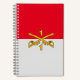 Un cuaderno de espiral rojo y blanco para miembros y fans de la 1ª Asociación de Regimiento de Caballería 1ª y unidad activa. Las ventas apoyan a la asociación, miembros y veteranos.