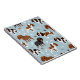 Cute Cavalier King Charles Spaniel con abrigos negros, marrones y blancos con huesos de perro dispersos y patrón de huellas de aletas.