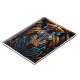 Sumérjase en un mundo de color y creatividad con esta impresionante obra de arte de cebra al estilo de mosaico. Este diseño cautivador muestra una cara de cebra compuesta por formas geométricas vívidas, creando un patrón vivo e intrincado. Los tonos dominantes de azul, rojo, naranja y amarillo se mezclan sin inconvenientes para resaltar las llamativas rayas y los ojos expresivos de la cebra. La decoración es circular, de inspiración cristalera, y el conjunto es muy animado y único. Perfecto para los amantes del arte y de la vida silvestre, esta excepcional obra de arte es ideal para impresiones, posters y varios objetos de decoración casera, aportando un toque de encanto exótico y audacia a cualquier espacio.