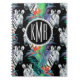Cuaderno Cebra y monograma exótico del modelo de flores el