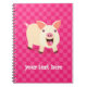 El cerdo lindo tiene una sonrisa grande. Dibujo del vector, fondo a cuadros rojo. Añada su propio texto.