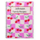 Este es un cuaderno de recetas familiares personalizadas que presenta un patrón de cerezas rojas lindas en tableros de ajedrez deformados rosados y blancos. Puede cambiar el nombre en el diseño utilizando el botón personalizar
