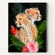 Chita Bouquet II de Annie Warren. Dos chitas están enmarcadas por hojas tropicales y vegetación en un fondo negro. | 164453Z