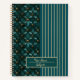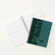 Cuaderno azul turquesa verde dorado con brillo y líneas de patrón. El cuaderno se puede personalizar con su elección de fuente y color de fuente. El cuaderno cuenta con una tipografía escrita a mano que es perfecta para un diario o cuaderno. El diseño femenino de moda se puede personalizar haciendo clic en el botón "Personalizar".
