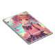 Cuaderno personalizado. Chica anime de acuarela con coletas, con lazos morados en el pelo, rodeada de mariposas en un bonito día de verano.