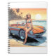 Un retrato moderno de un chica encantador, con un coche deportivo, en un hermoso paisaje de mar y playa, con colores cálidos al atardecer. Gráfico informático