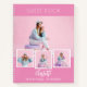 Crea tu propio collage de fotos único. Usa cuatro, cuatro de tu foto favorita. Personalización y nombre y edad/fechas. Un fondo rosa de moda, texto blanco.