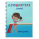 Este cuaderno de chica de gimnasia presenta una linda chica de gimnasia afroamericana parada frente a una viga. Esta niña negra lleva un leotardo rojo y sonríe sobre su nombre personalizado azul hermoso.