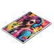 chica genial, usando gafas de sol y audífonos, arte callejero, colorido, tomboy