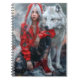 Cuaderno de Chica Gótica y Lobo. © Deseos Oscuros del Corazón. Una chica gótica está sentada al aire libre con su lobo blanco en la portada de este cuaderno.