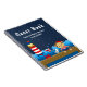 Este bonito y divertido libro de visitas incluye un mono marinero chica en una terraza de madera con gaviota y cangrejo. Al fondo, un faro rojo y blanco, un bonito pájaro en un velero, olas del océano y un cielo estrellado azul marino. El texto combina fuentes audaces y serif para un estilo elegante y moderno. Es ideal para una ducha de natación con temática náutica.