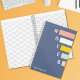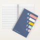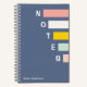 Un cuaderno azul para chicas con un texto colorido que dice "NOTAS" y un nombre completo monogramado por un personalizado.