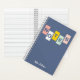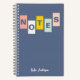 Un cuaderno azul para chicas con un texto colorido que dice "NOTAS" y un nombre completo monogramado por un personalizado.