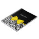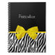 Un cuaderno blanco y negro de moda del modelo del estampado de zebra con un arco amarillo lindo de la cinta envuelto como un presente. Personalice este sistema de la moda diseñado para el fashionista añadiendo su nombre. Imagen impresa del plano, cinta no real.