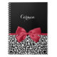 Personalice añadiendo el nombre de cualquier chica a este cuaderno de papel de leopardo blanco y negro con una bonita cinta roja brillante atada a un elegante arco. Este diseño de impresión animal de moda es una imagen impresa plana, y no contiene cinta real.